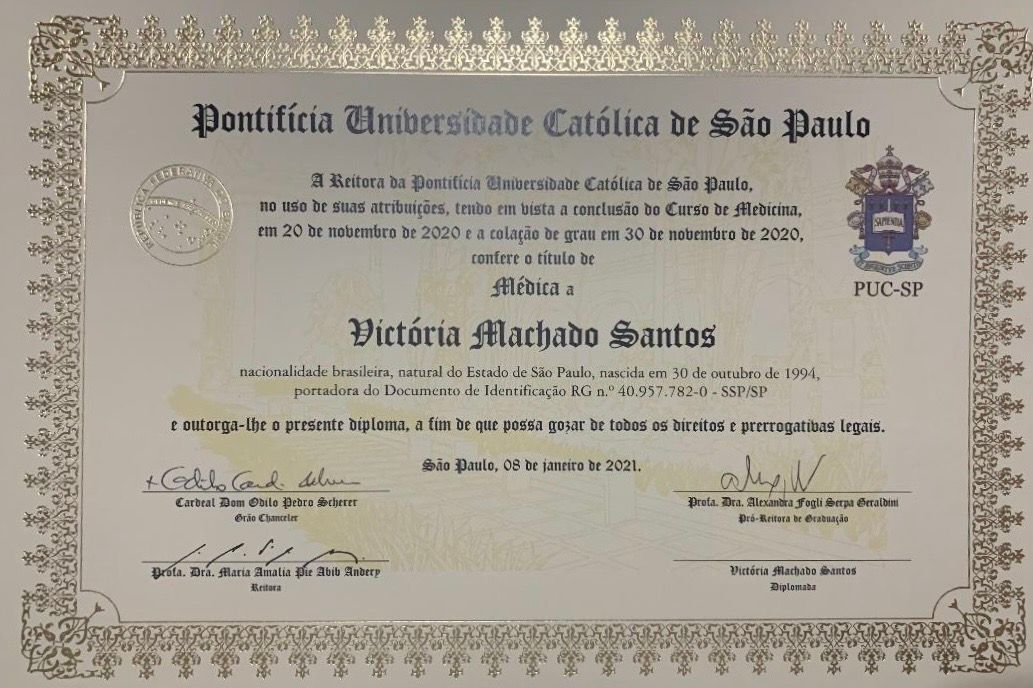 - Medicina pela Pontifícia Universidade Católica de São Paulo PUC-SP